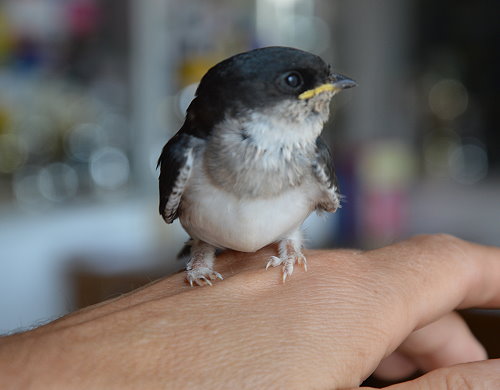 Meine Mutter hatte sie vor etwa zwei Wochen halb erforen und naß aus einem der vielen Nester an unserem Haus gefallen im Hof gefunden und eine Weile sah es gar nicht gut aus um sie, denn sie ist nach einigen Tagen sehr krank geworden.