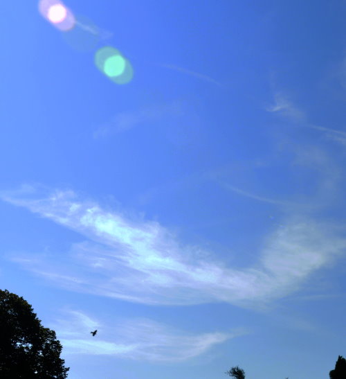 Hier fliegt sie nun. Zwei große Wolkenvögel und ihre Brüder und Schwestern begleiten sie. In unseren Träumen wirst du wiederkehren.